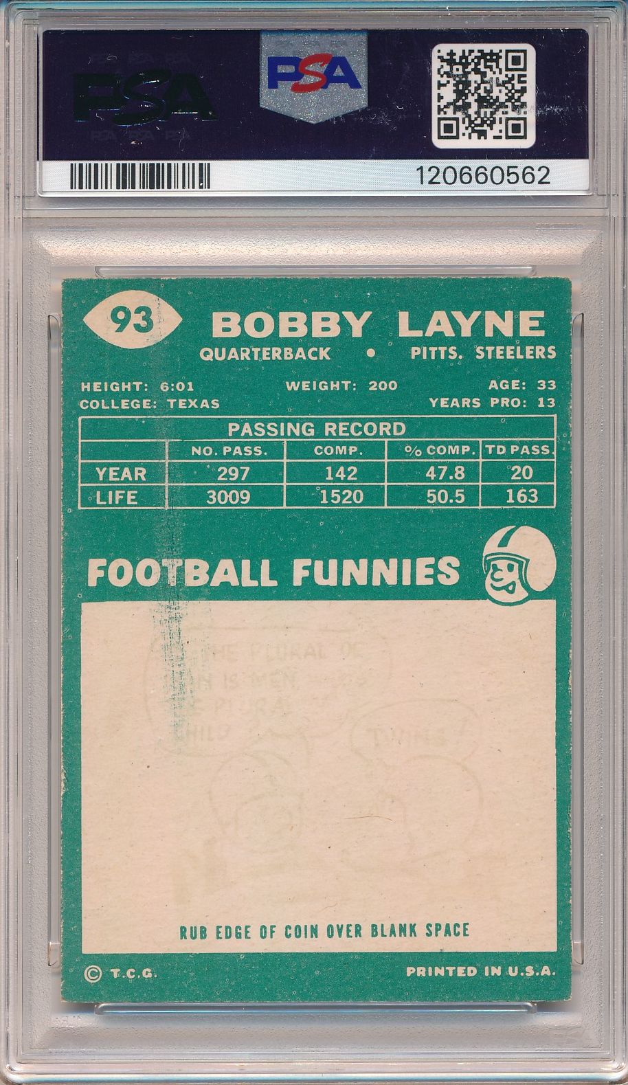 | Blanda | George | 1957 | 31 | Topps | Quarter Back | Bears | $20.00 | 1 | EX | |||